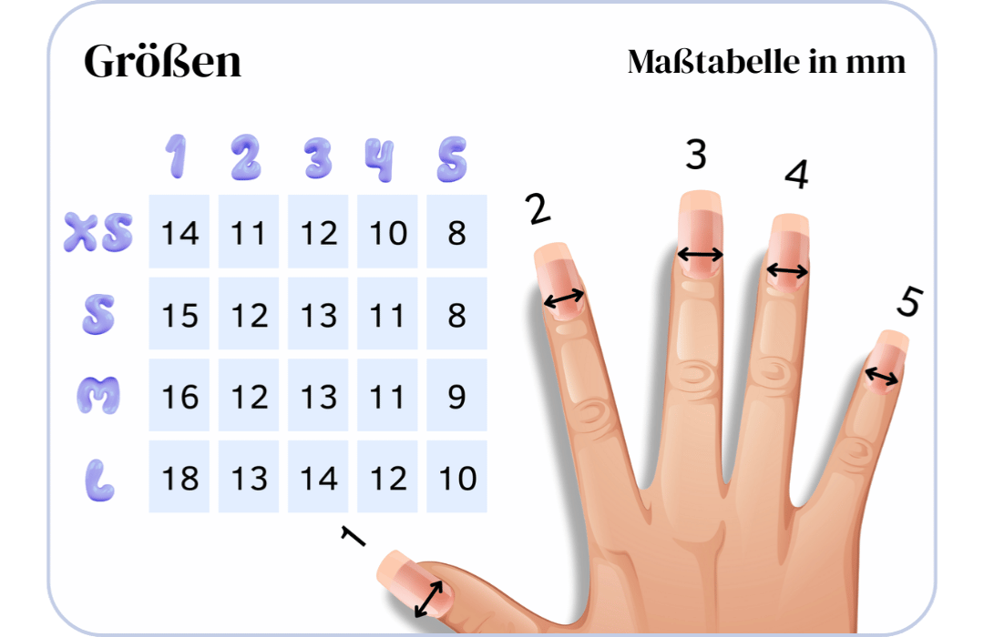 Folgen Sie diesen Anweisungen, um die perfekte Größe für Ihre Press-Ons zu finden.