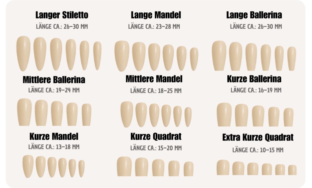 - Bitte wählen Sie die Größe, die am besten zu Ihren Nägeln passt (mm).