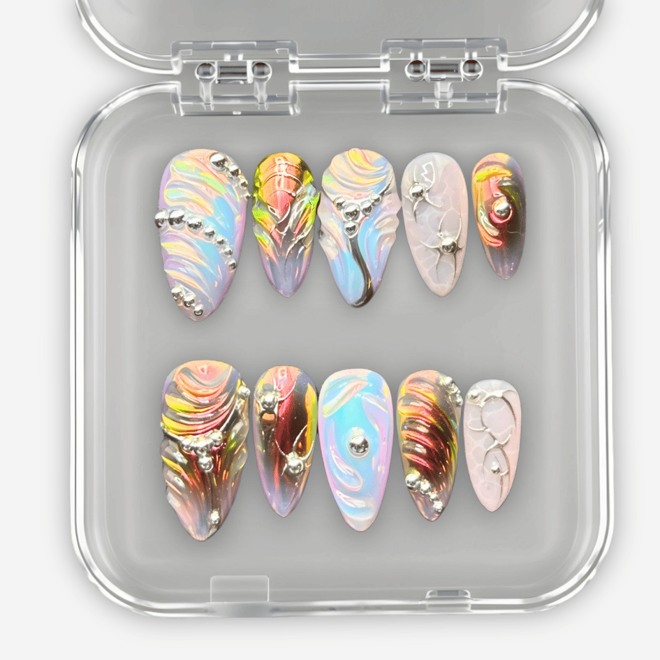 Chacun des 10 ongles de ton set est réalisé avec soin et amour, grâce à un processus minutieux.