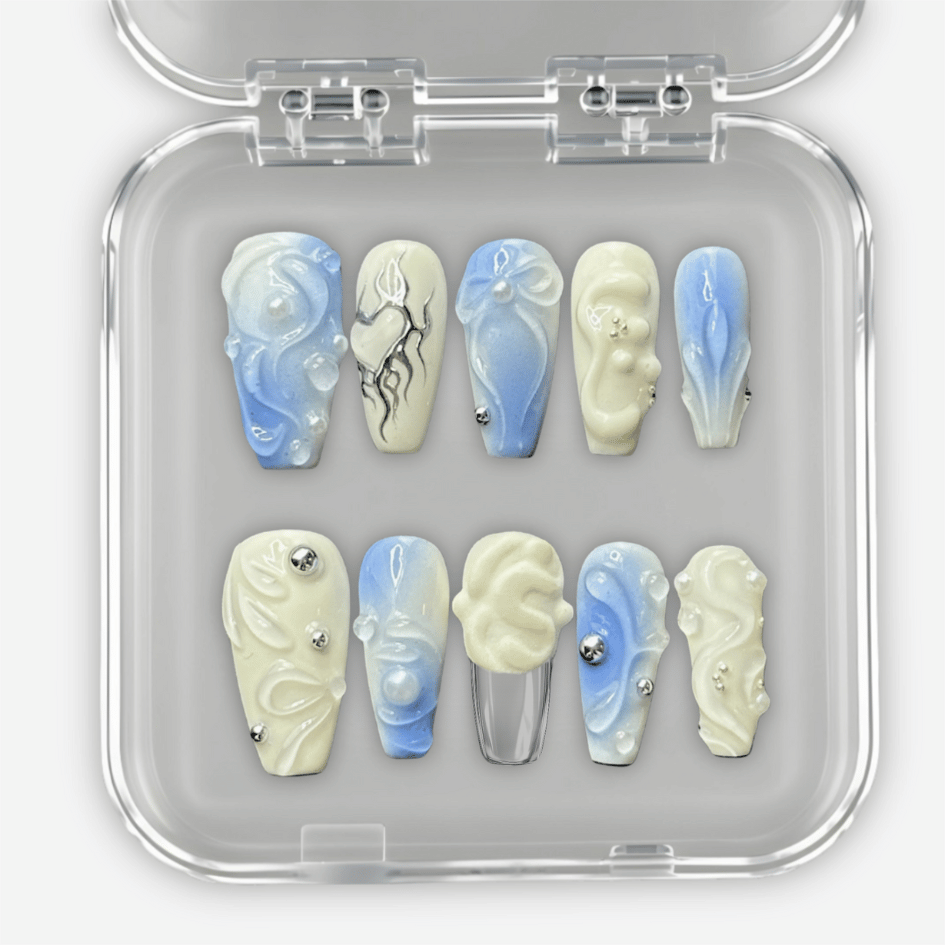 Chacun des 10 ongles de ton set est réalisé avec soin et amour, grâce à un processus minutieux.